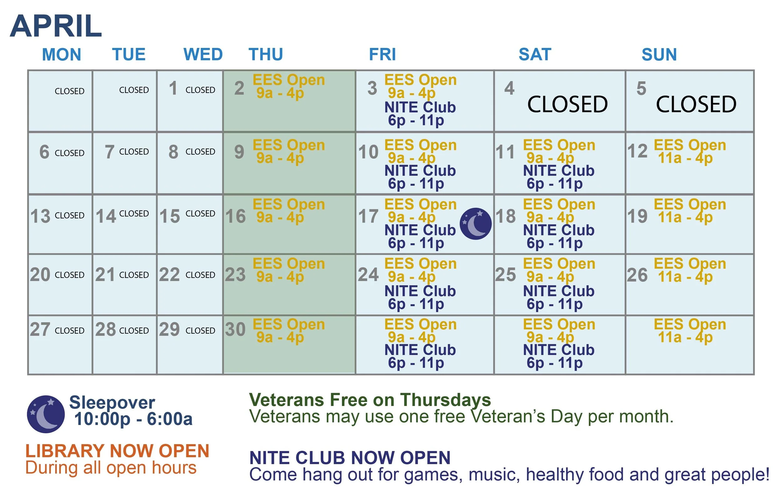 $36 per hour, enter every hour on the hour, sleepovers, and special events.